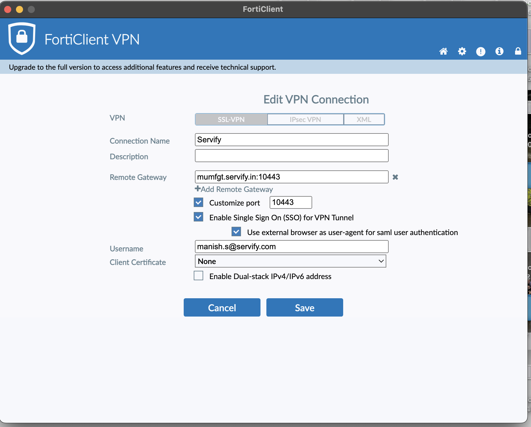 Remote Gateway: mumfgt.servify.in